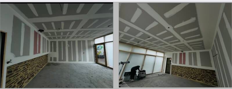 Bande à joints + ratissage murs plafond.